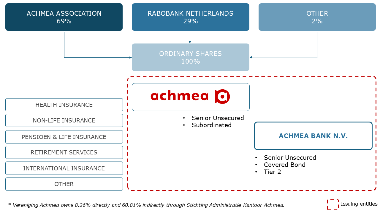 Achmea Bank is part of Achmea. All shares are therefore held by Achmea B.V. The shareholder structure can be represented as follows.